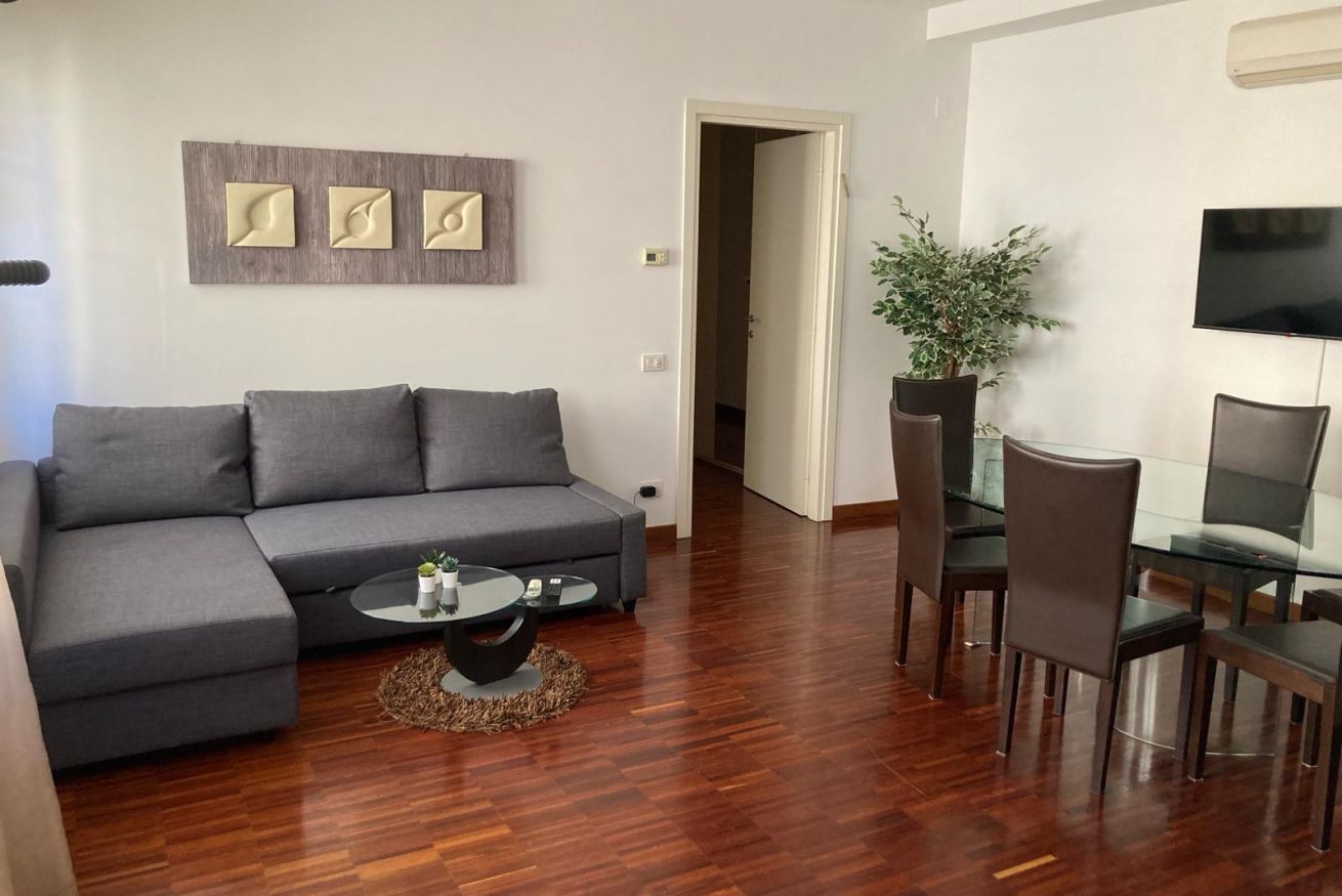 All'ingresso, sarete accolti da un ampio soggiorno, arredato con un tavolo spazioso e confortevole e un divano letto matrimoniale, ideale per momenti di relax e convivialità. L'appartamento si sviluppa su un corridoio luminoso che conduce alle due camere da letto matrimoniali e al bagno completamente accessoriato con una doccia moderna.